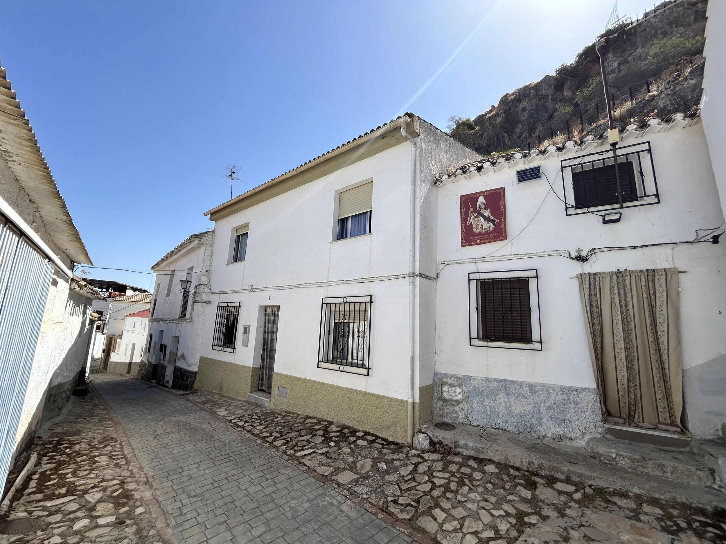 This is a solid and well maintained village house that sits towards the top of the peaceful and picturesque village of Limones in the municipality of Moclín. The property gives way to the mountain at the back, and it has beautiful views from the first floor to the west, over rolling hills of olive trees.
