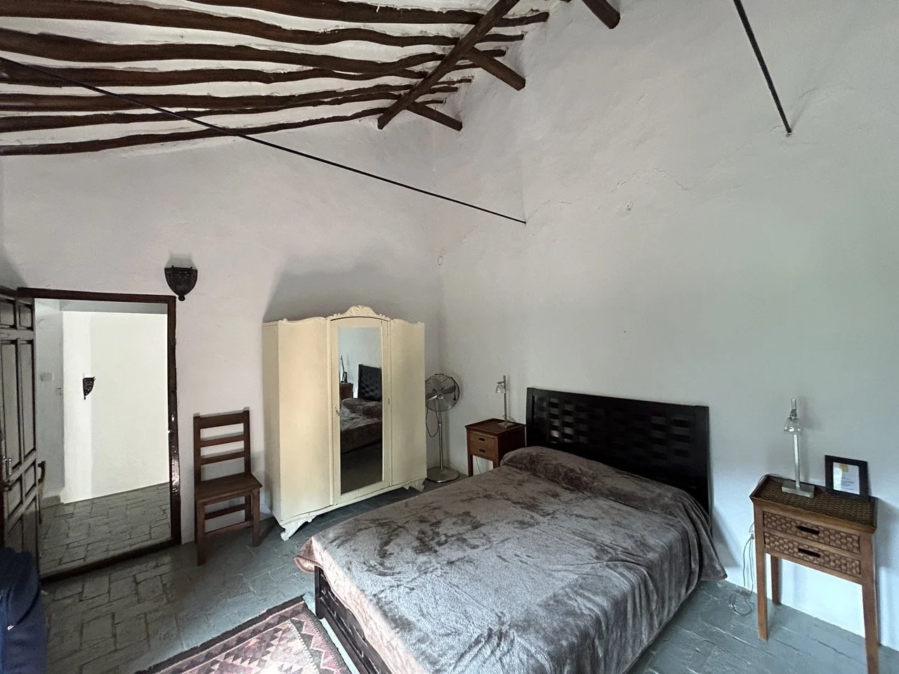 The apartment has a large living room, very spacious and cool bedroom with plenty of storage for clothes, an open-plan kitchen dining room and a bathroom that could accommodate about 8 people! The bathroom has a loo, urinal, huge shower and bath-tub, and with plenty of storage. A reminder that this house was restored with guests in mind.